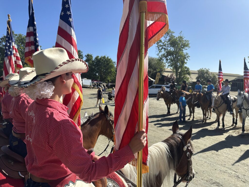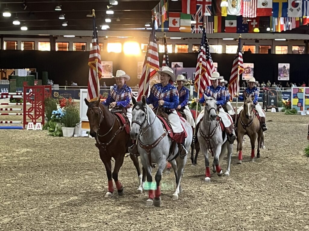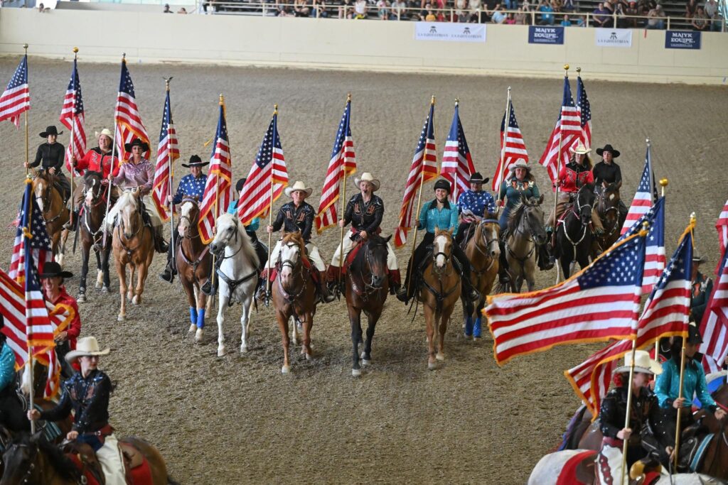 A patriotic look for the flag presentation at the Sacramento International Show - 2024